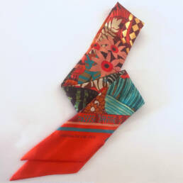 Le twilly est un petit accessoire de soie imprimée, comme un ruban, à porter de mille façons. Il se décline selon les envies : il peut se porter autour du cou, dans les cheveux ou au poignet. Il apportera une touche de fantaisie à vos looks du quotidien.